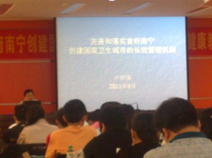 2011年4月26日由南寧市愛衛(wèi)辦組織全市PCO公司及相關(guān)單位進(jìn)行“完善和落實首府南寧創(chuàng)建國家衛(wèi)生城市長效管理機(jī)制”培訓(xùn)學(xué)習(xí)。
