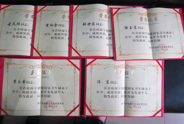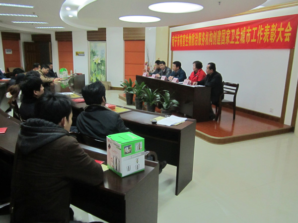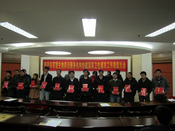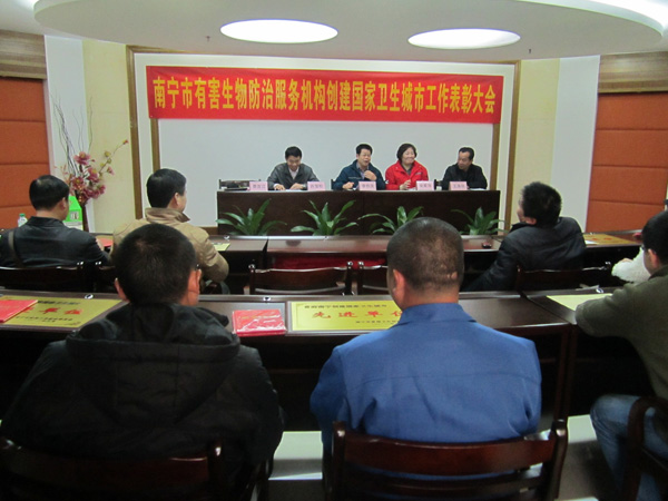 2012年3月8日,由南寧市愛(ài)衛(wèi)辦組織在市衛(wèi)生局隆重舉行了“南寧市有害生物防治服務(wù)機(jī)構(gòu)創(chuàng)建國(guó)家衛(wèi)生城市工作表彰大會(huì)”,南寧市康凈衛(wèi)生消毒殺蟲(chóng)有限責(zé)任公司在首府南寧市創(chuàng)建國(guó)家衛(wèi)生城市工作中,成績(jī)突出,被評(píng)為先進(jìn)單位以及本公司馮東等6名員工被評(píng)為先進(jìn)個(gè)人,圖為李作慶副主任主持會(huì)議及頒發(fā)證書(shū)現(xiàn)場(chǎng)。