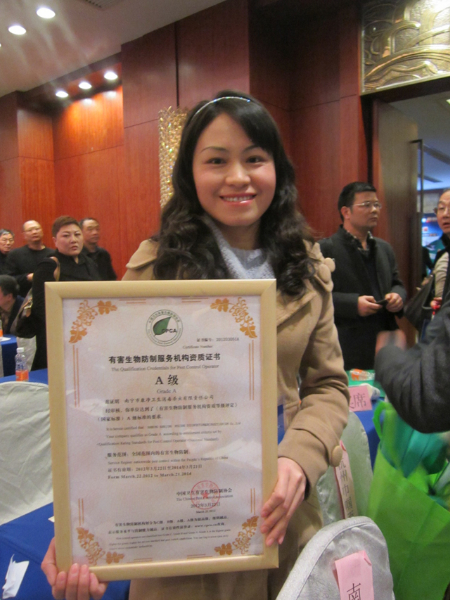 2012年3月21日-24日,中國(guó)衛(wèi)生有害生物防制協(xié)會(huì)2012年年會(huì)暨第四屆三次理事會(huì)在六朝古都南京市隆重召開(kāi),康凈公司被授予“中國(guó)有害生物防制服務(wù)機(jī)構(gòu)資質(zhì)A級(jí)證書(shū)”。年會(huì)是我國(guó)有害生物防制行業(yè)界最具規(guī)模與影響力的年度盛會(huì),屆時(shí),全國(guó)協(xié)會(huì)及會(huì)員單位、外國(guó)協(xié)會(huì)、省市地方協(xié)會(huì)(港臺(tái)協(xié)會(huì))、愛(ài)衛(wèi)系統(tǒng)、疾控系統(tǒng)、科研院校、藥械生產(chǎn)與經(jīng)營(yíng)企業(yè)、PCO企業(yè)等有關(guān)人士齊聚一堂,本次會(huì)議以“除四害與愛(ài)國(guó)衛(wèi)生運(yùn)動(dòng)——紀(jì)念?lèi)?ài)國(guó)衛(wèi)生運(yùn)動(dòng)開(kāi)展60周年”為主題,并對(duì)2011年通過(guò)A級(jí)資質(zhì)考評(píng)的全國(guó)10家PCO公司正式頒發(fā)資質(zhì)證書(shū)。圖為(中國(guó)衛(wèi)生有害生物防制協(xié)會(huì))秘書(shū)長(zhǎng)楊華林先生、(歐洲有害生物管理業(yè)協(xié)會(huì))總干事Rob Fryatt 先生作報(bào)告,及頒發(fā)證書(shū)現(xiàn)場(chǎng)。